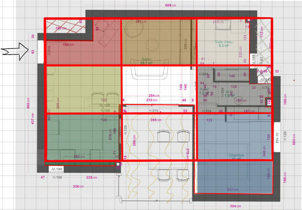 L’analyse des lieux et du plan de l’appartement a pu définir les différentes zones définies par le « bagua ».